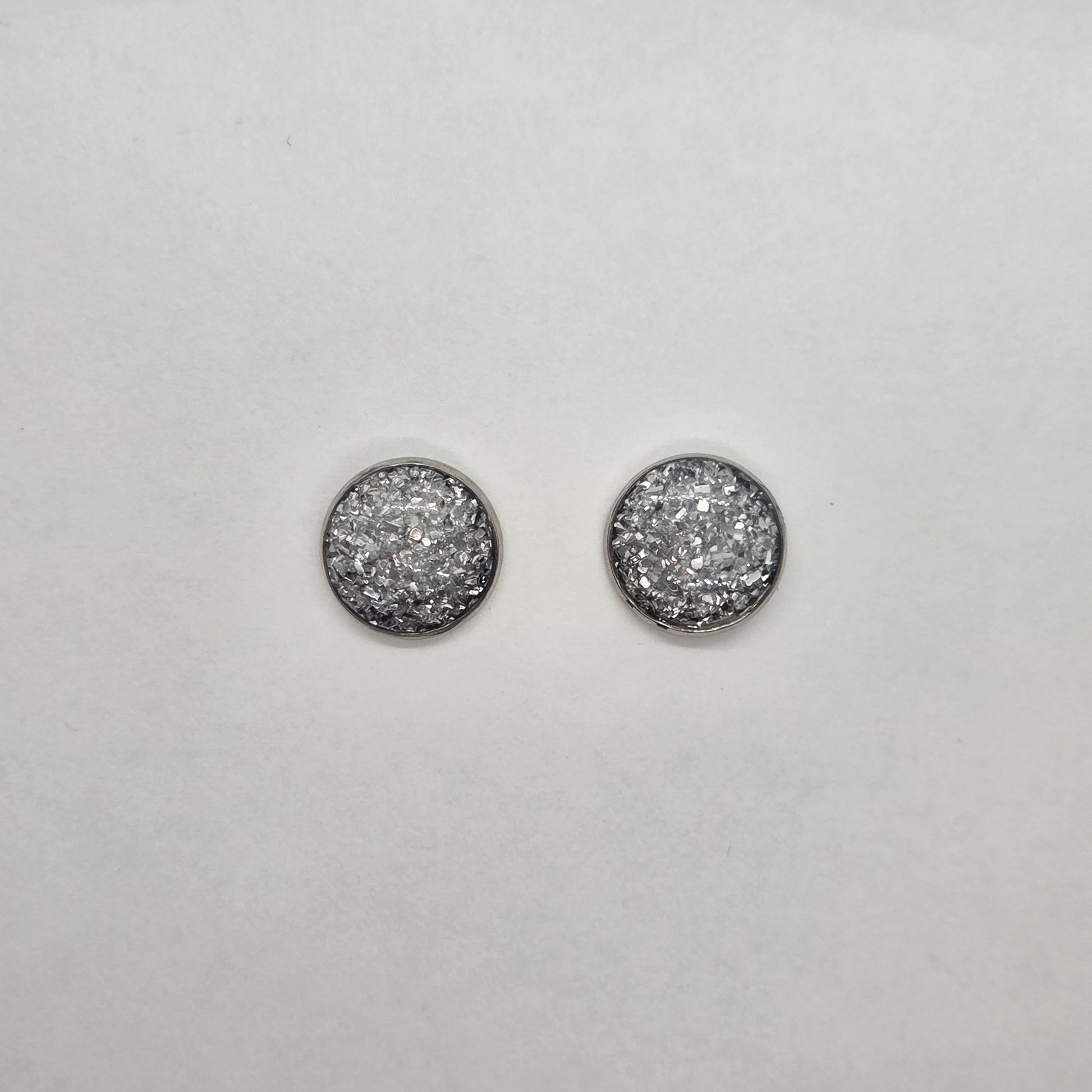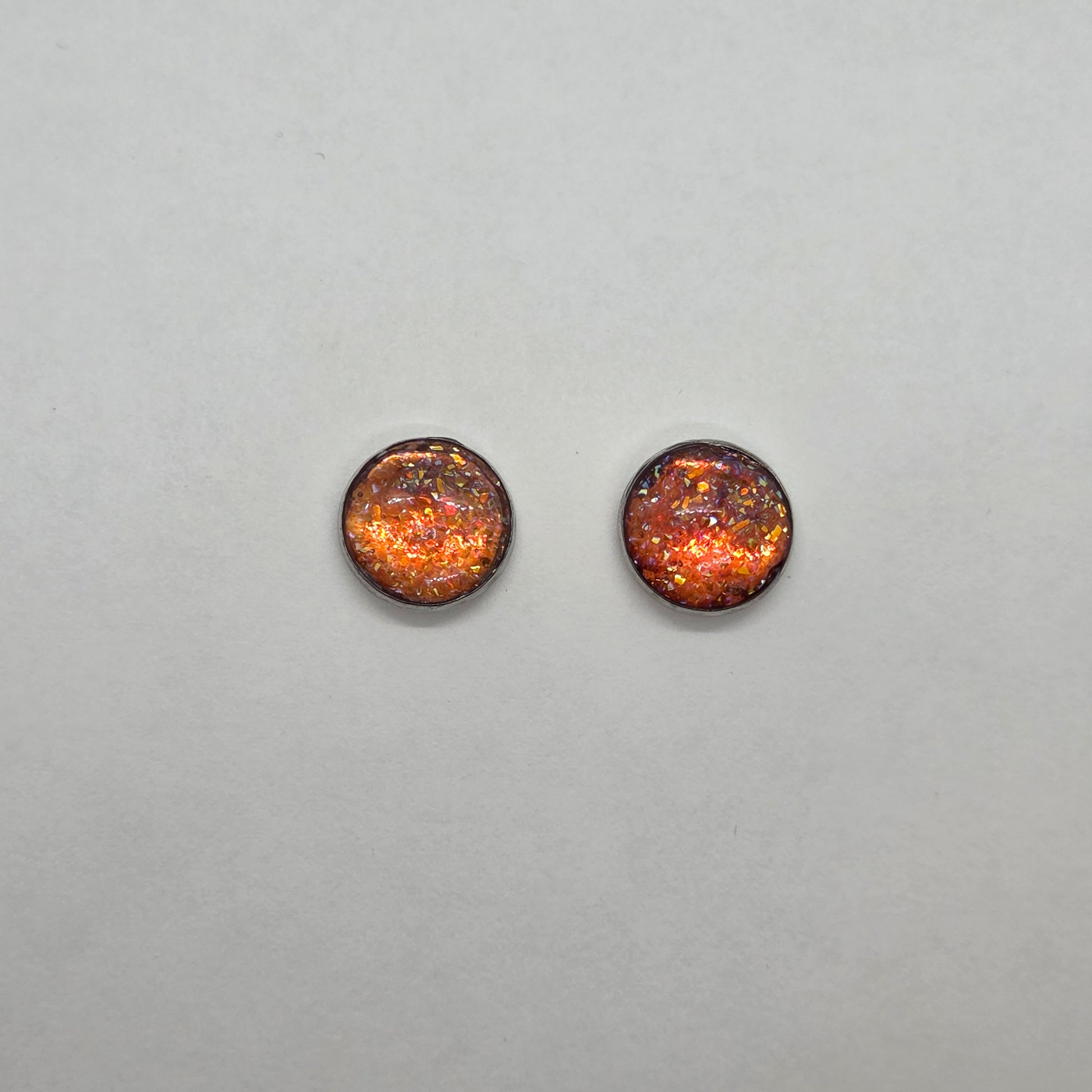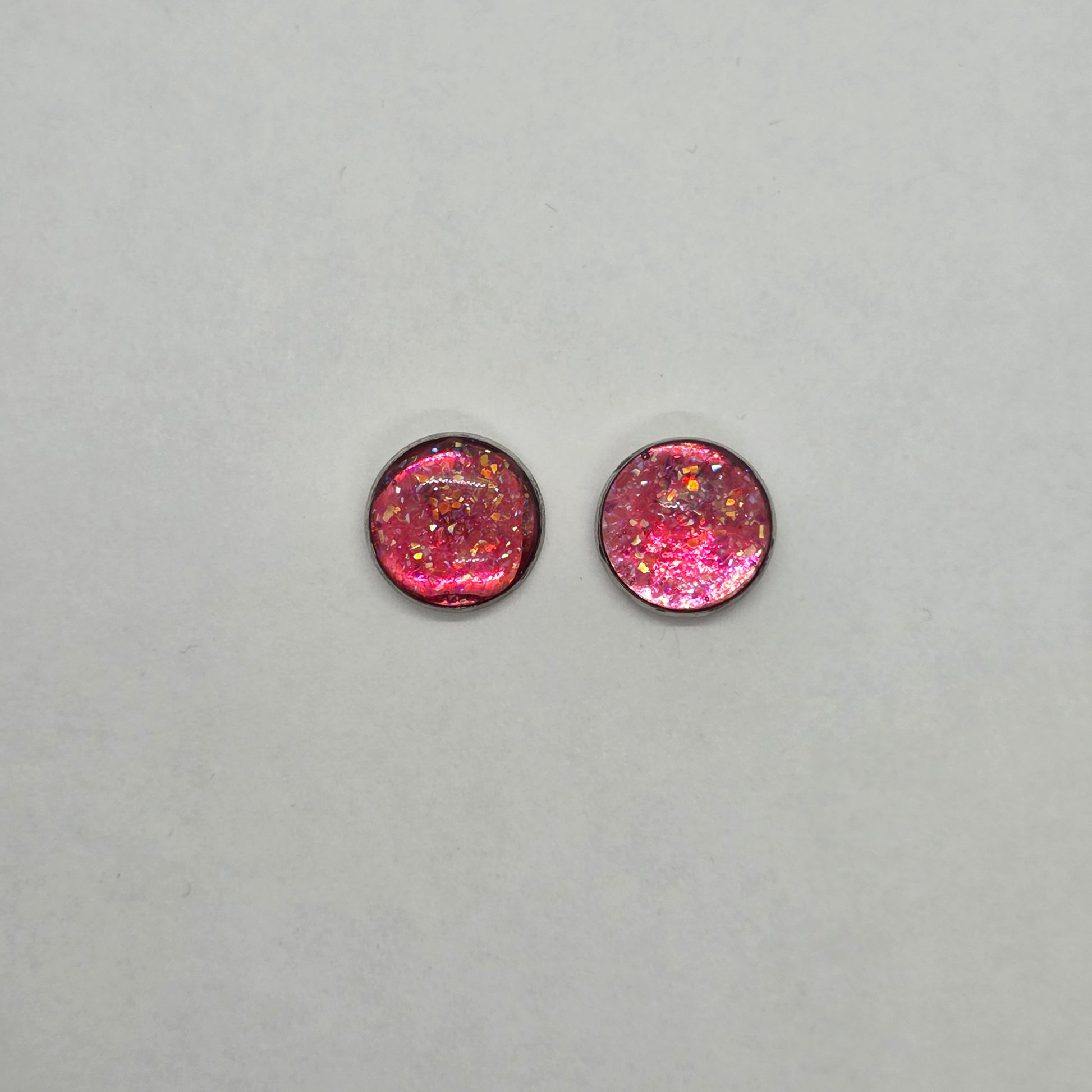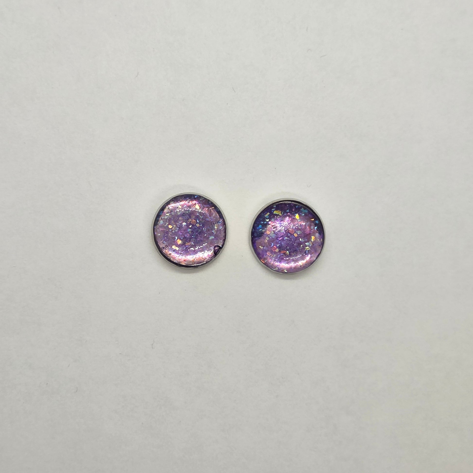 Unleash your inner sparkle with these enchanting Sparkle Stud Earrings. Each pair is carefully handmade with a unique blend of highly iridescent flakes suspended in clear resin, giving them a magical, depth-filled appearance reminiscent of a fairy garden or a dragonfly's wing in the sun.