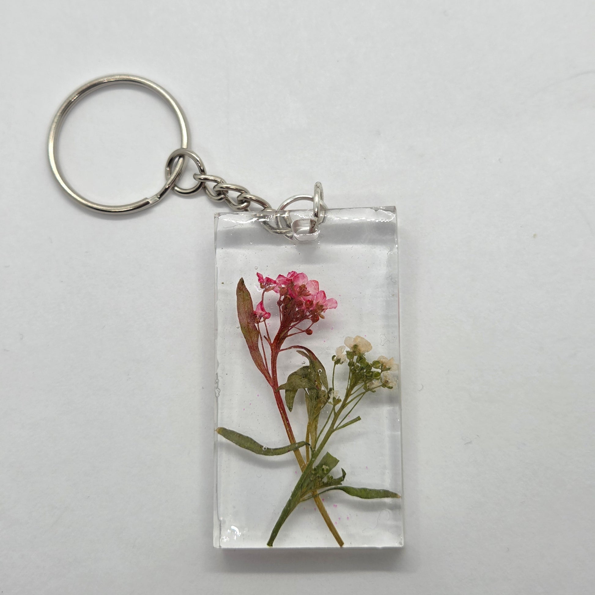 Carry a piece of nature with you everywhere with these unique, handcrafted resin keychains. Each rectangular pendant features real, dried pressed flowers delicately preserved in crystal-clear epoxy resin.